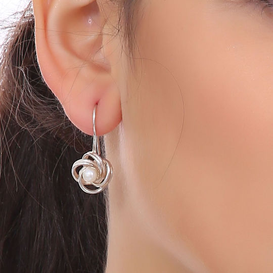 Preciosos aretes grandes con perla central y detalles texturizados con grecas, son elaborados en plata 925.