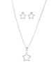 Set Dije y aretes plateados en forma de estrella con cadena doradas. Elaborado con plata .925 bañados en oro de 18kt.