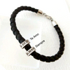 Pulsera sencilla con 3 aros de plata y argollas grabada. Elaborada en plata ley .925 con caucho de 6mm imitación piel. Resistente al agua. Disponible en 3 colores.