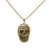 Dije calavera  grande elaborado en plata .925 al alto brillo con piedra unakita calada.