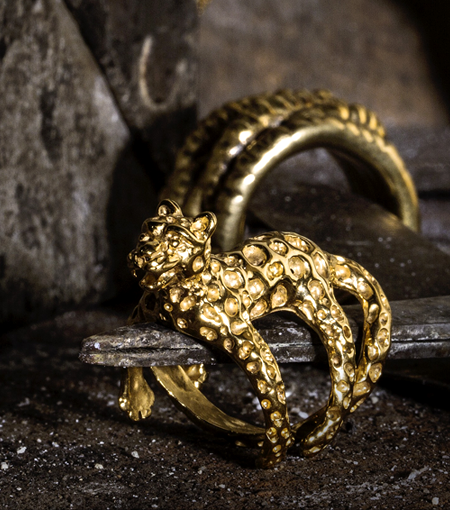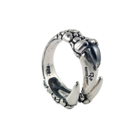 Anillo en forma de jaguar elaborado en plata .925. Oxidado para mostrar la textura del diseño. Ajustable para cualquier tamaño.