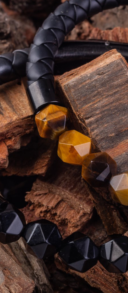 La pulsera es de caucho tratado resistente al agua. Selecciona Negro, Azul Marino o cafe Chocolate para el color de El diámetro del caucho es de 6mm y el de los aros es de 7.5mm.