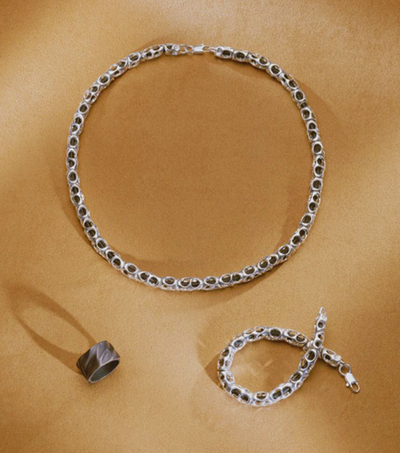 Elaborado en plata ley .925 con un caucho que atraviesa.