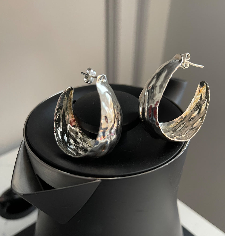 Aretes en forma de gota bombeada en tamaño pequeño (2cm), elaborados en plata 925.
